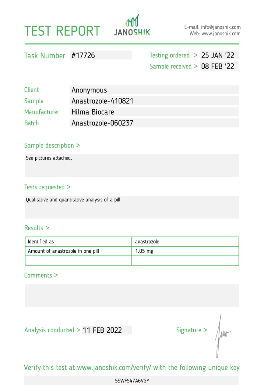 Anastrozole Hilma Biocare shows excellent results when used during cycles for anti-estrogenic protection: