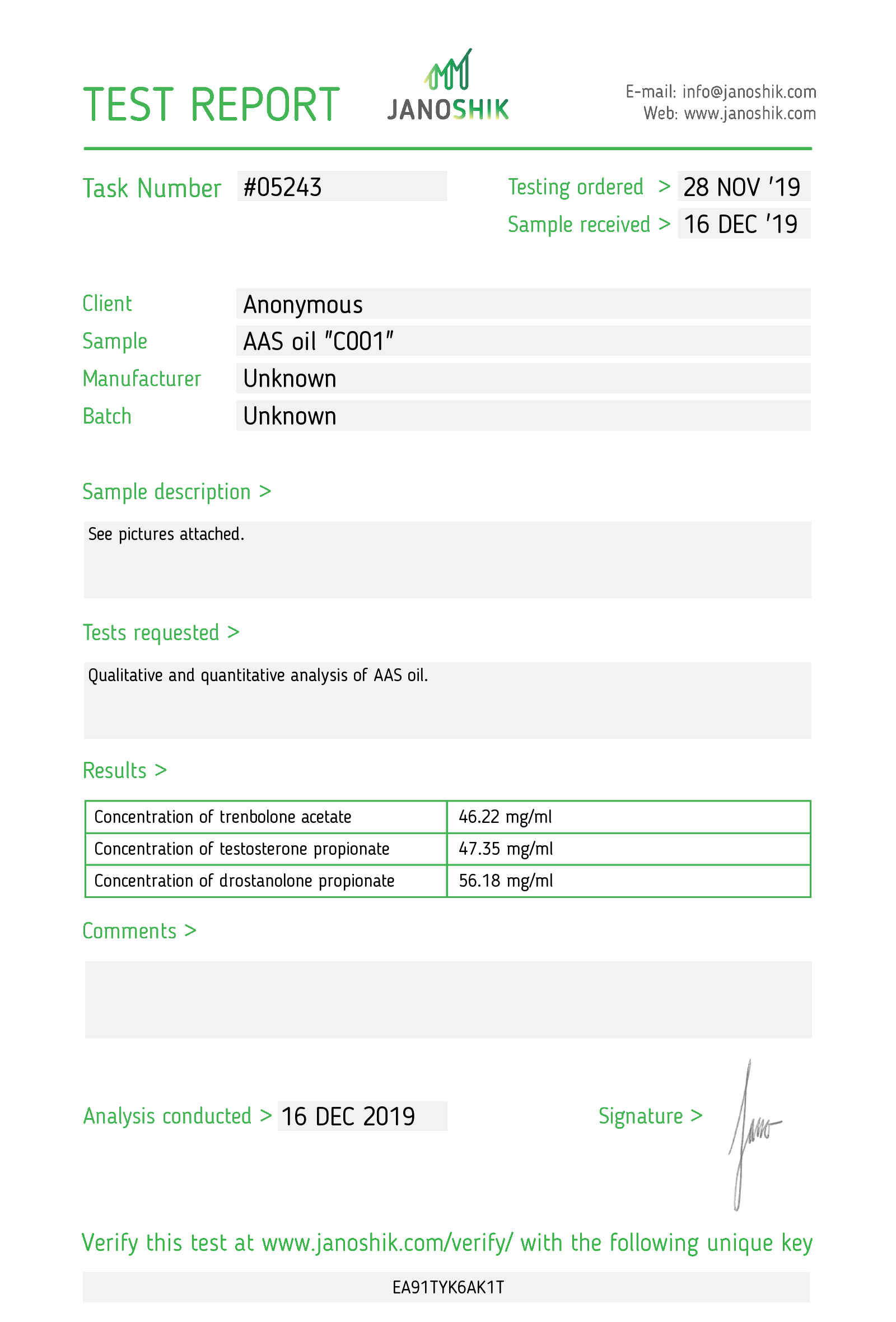 Content (active): Drostanolone propionate (50mg/ml),