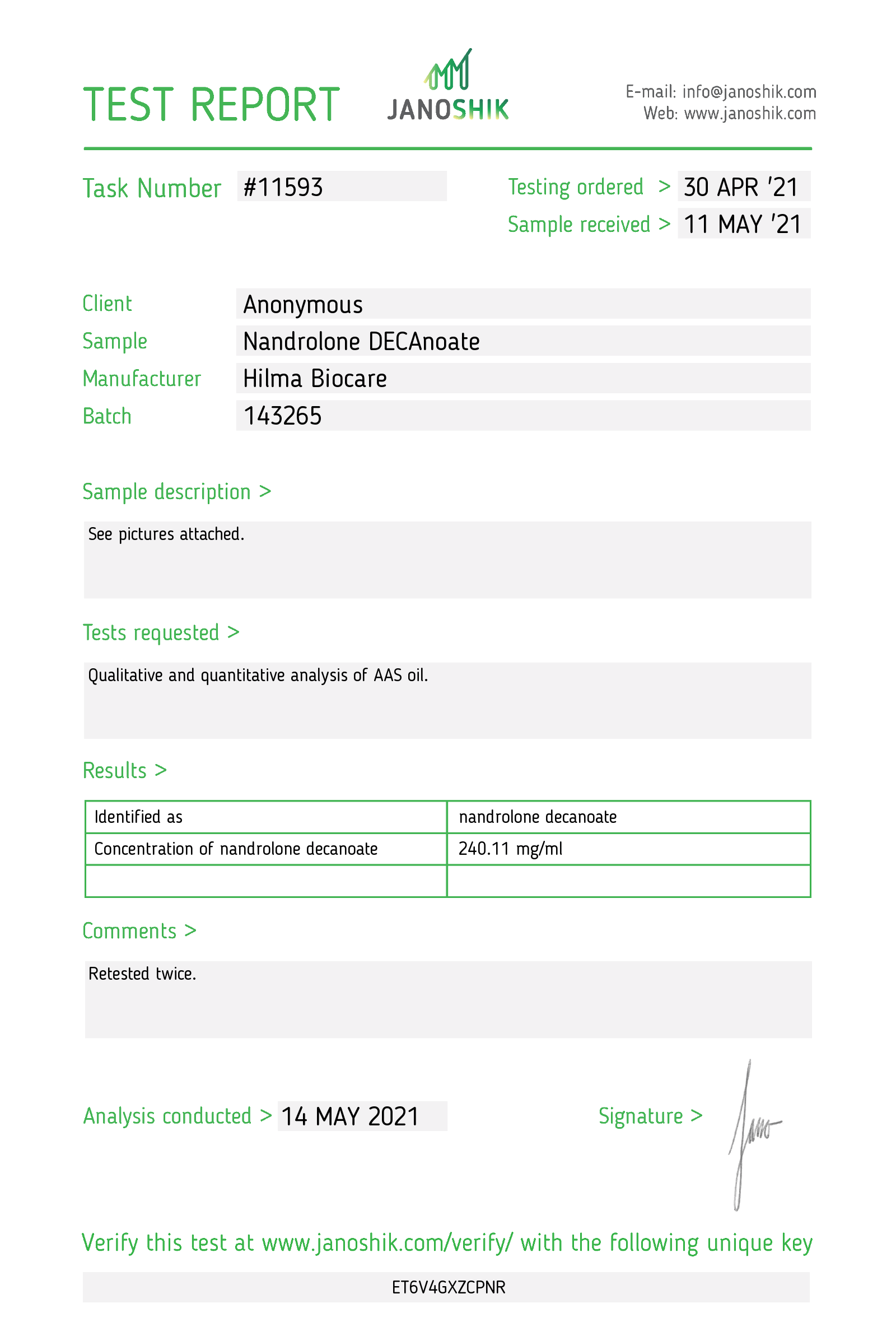 Nandrolone Decanoate Hilma Biocare shows excellent results when stacked with other anabolic steroids and performance-enhancing substances. It can be safely combined with: